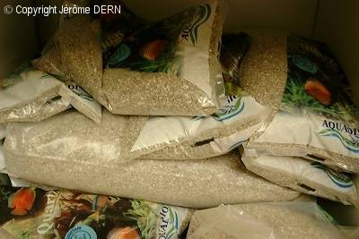 Le sol de l'aquarium Le sol de l'aquarium est important si vous désirez mettre des plantes vivantes. Il faut en effet qu'il soit un bon support pour ces dernières (suffisamment épais, aéré et nutritif). Le sol sera composé en surface de sable que vous choisirez de préférence sombre et de granulosité moyenne (de 0,25 à 0,5 mm). En effet un sable trop grossier n'est pas beau et se remplis de déchets rapidement mais un sable trop fin ne se nettoie pas facilement et ne facilite pas la respiration du sol. Le dessous du sol sera constitué d'une couche nutritive d'Aquabase (ou Aqualite) ou d'un mélange maison (15% Argile, 35% Terre de bruyère, 50% Sable). Entre les deux couches il peut être utile de mettre une grille en plastique (que l'on trouve dans tous les magasins de bricolage) : cela évite que la couche nutritive remonte. Pour approfondir le sujet, reportez-vous à la fiche d'initiation.