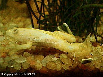 Il n'y a pas a ma connaissance de variété albinos de sorte que les jeunes grenouilles "gold" proposées en animalerie ont toutes les chances d'être du genre Xenopus et plus précisément des Xenopus Laevis. Il y a peu de chance de trouver la variété sauvage de la Xenopus Laevis en animalerie, donc si vous rencontrez une frêle grenouille gris-vert, il s'agit presque avec certitude d'une Hymenochirus Boettgeri. Comme le Xenopus, elles ont un bon odorat et une grande sensibilité au toucher mais une mauvaise vue. Les conditions de maintenance Alimentation L'alimentation est un des points délicats de la maintenance de ces animaux. Comme nous l'avons déjà dit ces grenouilles sont exclusivement carnivores. Elles ne peuvent se satisfaire d'une nourriture en granulés ou en flocons qu'elles ne toucheront pas. Dans la nature, leurs repas sont constitués de vers, de petits poissons, de petits batraciens et d'insectes en tous genres. Elles sont très agiles pour capturer les proies vivantes : d'un bond elles sont capables de happer un insecte à la surface de l'eau. Concernant les vers de vase, elles ont une méthode extrêmement amusante lorsqu'on l'observe pour la première fois : Avec de rapides et puissants mouvement de leurs pattes avant, elles remuent la vase et le sable et avalent goulûment tout ce qui en sort. Elles sont particulièrement voraces et il est absolument nécessaire de limiter leur appétit sous peine qu'elles explosent ! Il est toujours impressionnant de voir le ventre gonflé à craquer d'une Xenopus ayant trop dévoré de vers de vases ! Ne donner que la quantité de nourriture qui peut être absorbée en 15 minutes. Il est possible de les habituer à venir manger directement dans la main.