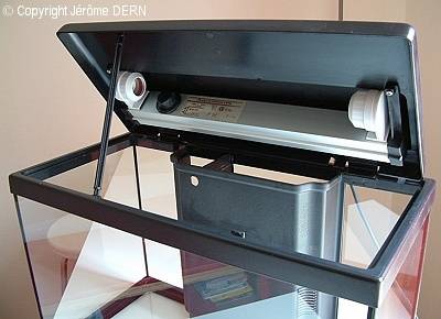 Galerie et éclairage Le choix de la galerie est un des plus important choix que vous ayez à faire lors de l'achat d'un aquarium. En effet la galerie doit avoir deux caractéristiques essentielles : offrir un accès simple, facile et complet au contenu de l'aquarium d'une part et d'autre part permettre l'éclairage correct de l'aquarium. Ces deux points sont fondamentaux car une bonne galerie constitue souvent la majeure partie du prix de l'aquarium : il est donc assez délicat d'en changer après coup. Il ne faut donc pas acheter un aquarium proposé avec une galerie insuffisante. Un accès simple est impératif car lors des opérations de nettoyage vous devez facilement avoir accès à la quasi-totalité du contenu de l'aquarium. La galerie doit donc s'ouvrir le plus complètement possible et ceci simplement et rapidement. De plus les tubes néons ne doivent pas entraver l'accès à l'intérieur de l'aquarium. La galerie doit proposer un éclairage à base de néons : les galeries proposant un éclairage par une simple ampoule sont à bannir car un tel éclairage est mauvais et insuffisant. Le nombre et la puissance électrique des néons doit être adaptée au volume du bac. Ainsi, plus le bac est grand plus la puissance électrique d'éclairage (et donc le nombre de néons) doit être grande. C'est un point fondamental car, sans une puissance suffisante, vos plantes ne pousseront pas correctement. Il est souvent délicat ou impossible d'ajouter des néons à une galerie existante, il faut donc que la puissance offerte par la galerie soit acceptable dès le départ. Pour notre aquarium de 120 litres il nous faut une puissance d'éclairage de 30 à 50 watts. Les néons du commerce ont des puissances de 14 W (longueur 36 cm), 15 W (longueur 44 cm), 18 W (longueur 59 cm), 20 W (longueur 60 cm), 25 W (longueur 75 cm), 30 W (longueur 90 cm), 38 W (longueur 104 cm), 40 W (longueur 120 cm), 58 W (longueur 150 cm). Il est fortement préférable d'avoir un éclairage trop puissant que pas assez. Notre éclairage de notre aquarium de 120 litres doit donc être composé (par exemple) de deux néons de 15 W (éclairage faible) ou de deux néons de 25 W (éclairage fort). Pour approfondir ce sujet et choisir vos tubes néon, reportez-vous à la fiche "Éclairage".