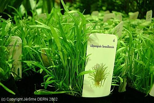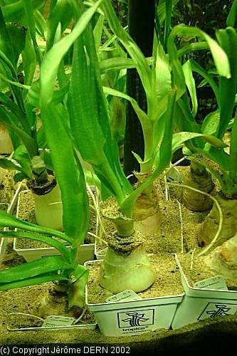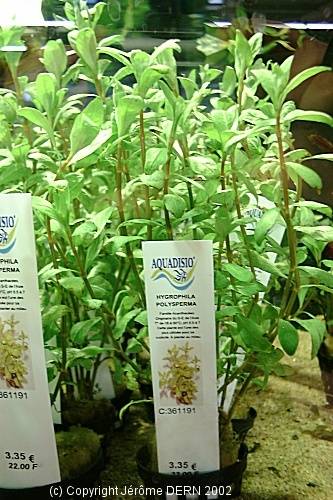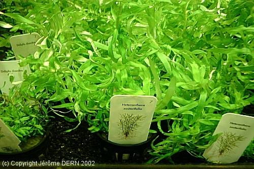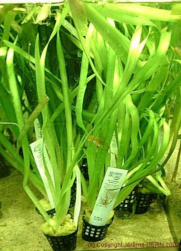 Voici une petite liste (non exhaustive) de plantes vendues comme plantes d'aquarium mais qui sont à déconseiller car ce sont des plantes terrestres qui ne "tiennent" pas lorsqu'elles sont immergées : Chamaedora, Chlorophytum, Dracaena, Spathiphyllum, Fittonia, Acorus, Cyperus, Lagenandra, Ophiopogon, Fougère de Borneo (Selaginella sp.), Cordyline, Hemigraphis, Althernanthera, Syngonium, Péliosanthes, Aglaonema, Caladium... Reproduction des plantes d'aquarium Il est possible de multiplier les plantes dont nous disposons par différentes techniques simples ou compliquées. Le marcottage La plante produit un rhizome (tige souterraine) ou un stolon (au niveau du sol) au bout duquel se développe une nouvelle plante qui rapidement prend racine. Lorsque la plantule est enracinée, le rhizome ou le stolon peut être sectionné. Exemple : Echinodorus, Sagittaria, Vallisneria, Cryptocorynes. Certaines plantes produisent des feuilles qui apparaissent sur une tige qui, lorsqu'elle est proche du sol, prend racine (Hygrophila, Najas, Hydrocotyle, Cardamine, Echinodorus maior...). Dans ce cas, il est possible de plaquer au sol la tige(sans l'abîmer) et d'attendre l'enracinement. Lorsque les racines ont bien poussé, il est possible de sectionner cette tige et d'obtenir ainsi deux plantes. Le bouturage Il s'agit de prélever un fragment de la plante et de la replanter. La plante peut être sectionnée au niveau de sa tige principale dans la partie terminale tout en gardant deux à trois noeuds. Il vaut mieux utiliser une lame tranchante et éviter de meurtrir la plante avec les doigts. La bouture ainsi récupérée peut être plantée et va rapidement prendre racine. La tige sectionnée de la plante d'origine va produire une ou plusieurs tiges secondaires à l'endroit de la coupure. Exemple : Cabomba. La fragmentation du pied Il existe des plantes dont la division peut se faire au niveau du pied : une coupure au niveau du pied permet de récupérer une plantule complète avec ses racines. La division de touffes Chez certaines plantes (Isoetes, Acorus, Blyxa...), la division de la plante peut être réalisée en divisant les racines à la main ou au couteau si les racines sont trop enchevêtrées. La multiplication par graines Les plantes qui fleurissent peuvent être reproduites par graines après fructification. Cela signifie, en aquarium, que les fleurs doivent être pollinisées manuellement à l'aide d'un coton tige ou d'un petit pinceau. Il faut naturellement disposer de deux plantes fleuries. Les graines sont disposées dans de petits pots contenant sable, argile et tourbe. Les pots sont immergés dans un endroit bien éclairé. Stérilisation des nouvelles plantes Qu'elles proviennent du commerce ou de l'aquarium d'un ami, il faut toujours prendre garde aux différentes maladies, algues ou parasites qui peuvent être introduits avec les plantes. Il est par exemple assez courant de trouver des oeufs ou d'escargot ou des larves d'insectes dans les plantes du commerce. L'introduction d'une algue parasite est également toujours possible. Pour éviter ces désagréments, il faut stériliser la plante mais cela peut l'affaiblir... Deux méthodes sont possibles :