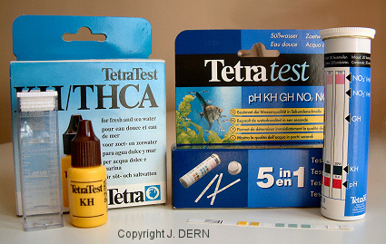Autres paramètres Il est possible que malgré le soin apporté à l'entretien de l'aquarium et la surveillance de ses paramètres (lumière, oxygène, pH, nitrites...) il y ait une dérive des dits paramètres ou que les poissons meurent ou tombent malades. Dans ce cas, il est nécessaire, pour qu'un spécialiste vous donne des conseils pertinents, de tester d'autres paramètres important. La dureté totale (TH), le pouvoir tampon (KH), sont des paramètres importants car ils ont une forte influence sur le pH. Il est assez difficile pour un débutant de "jongler" avec ses paramètres sans faire de lourdes erreurs, c'est pourquoi il est conseillé de ne pas s'en préoccuper dans un premier temps.